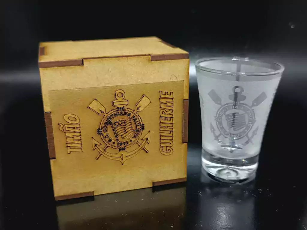 - Kit com 1 Copos Shot Personalizado + 1 Caixa em MDF com gravação