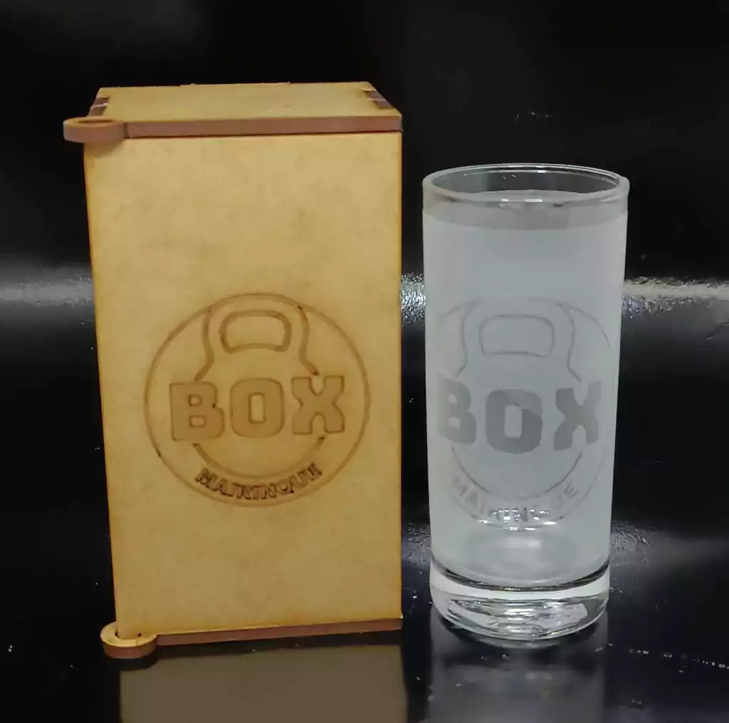 - Kit com 1 Copo Vodka Personalizado + 1 Caixa em MDF com gravação