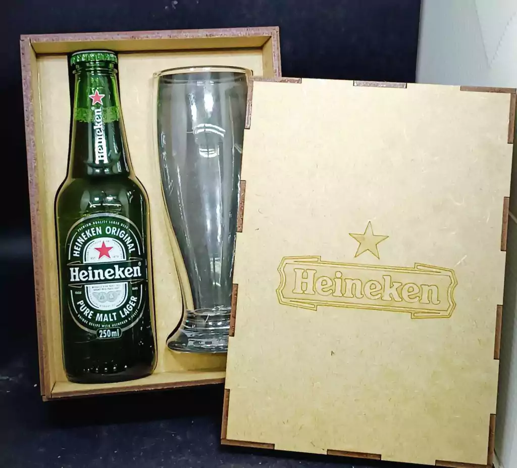 - Kit com 1 taça de cerveja ou copo + 1 Caixa em MDF com "berço" + personalização