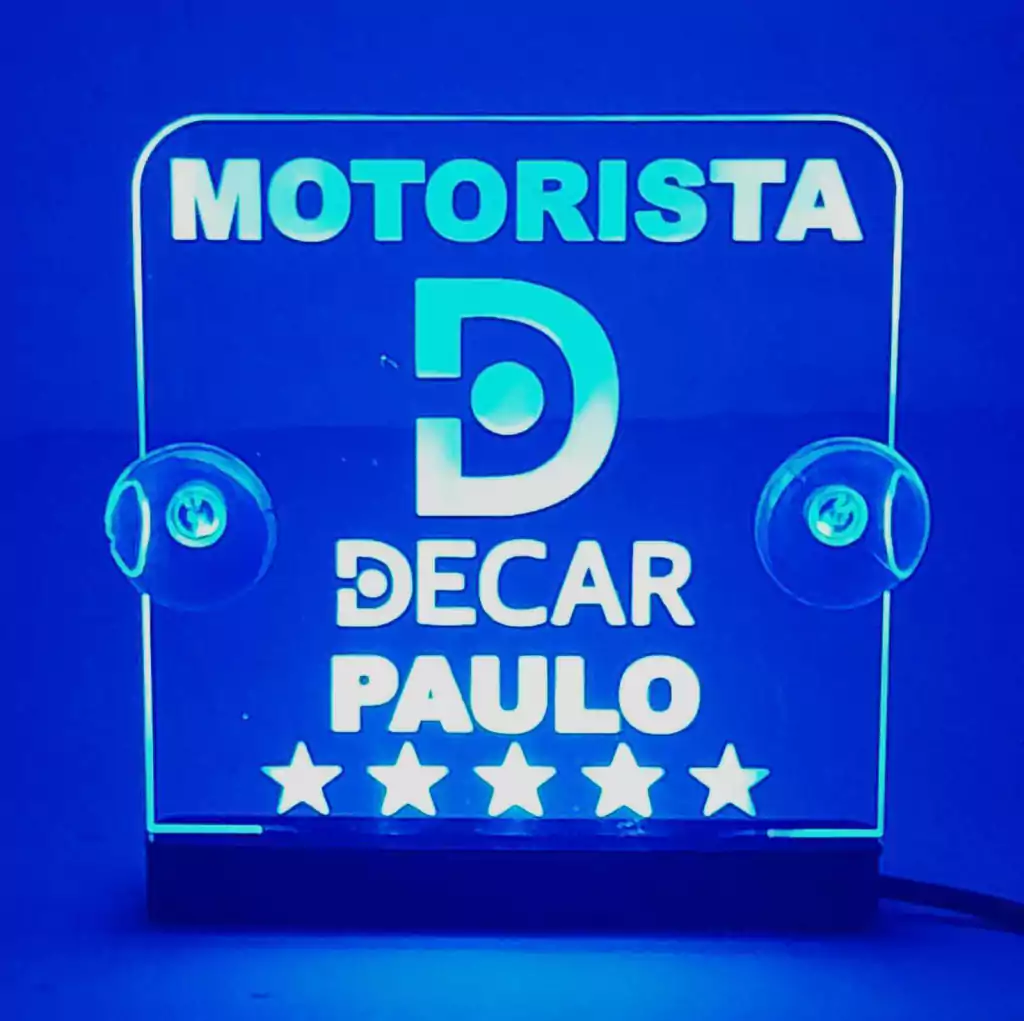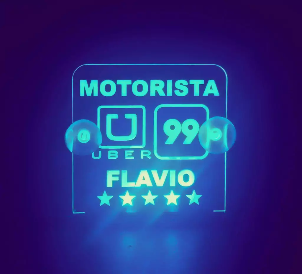 Ilumine sua jornada com estilo! A nossa Luminária LED confeccionada em acrílico de alta qualidade de 2 mm é a adição perfeita para motoristas de aplicativos. Com uma arte proporcional a 10 cm, você pode personalizar seu espaço com os símbolos dos aplicativos de motorista que você desejar, como Uber, Pop, 99 e muito mais.