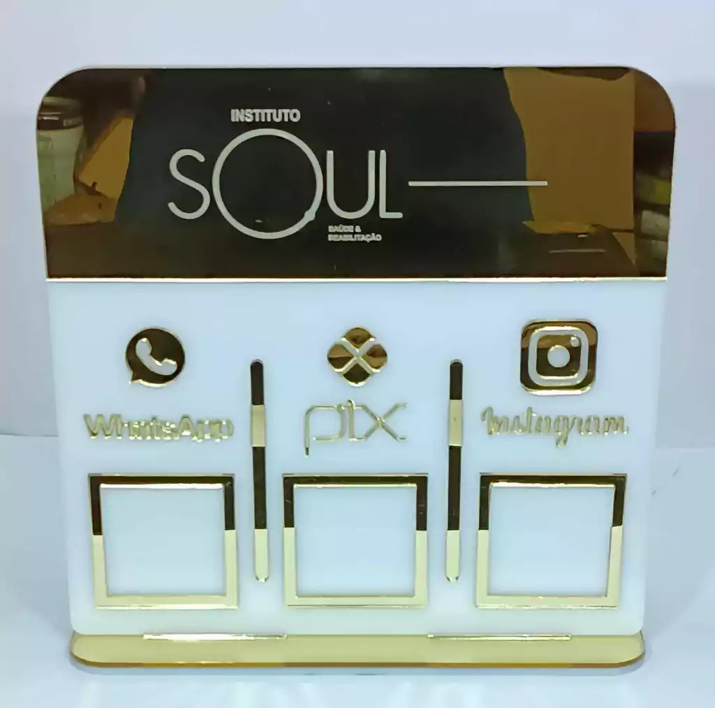 Placa Display 3 QR CODE em Acrílico com sua LOGO